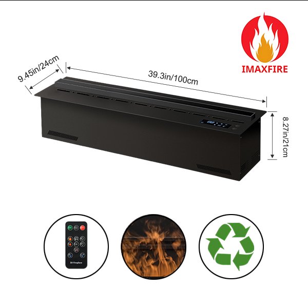 The Imaxfire Water Vapor Electric Fireplace offers a modern, eco-friendly, and safe alternative to traditional fireplaces. It uses tap water to create lifelike flames through ultra-fine cold water vapor illuminated by LEDs. The flames are cool to touch and adjustable in speed and height.