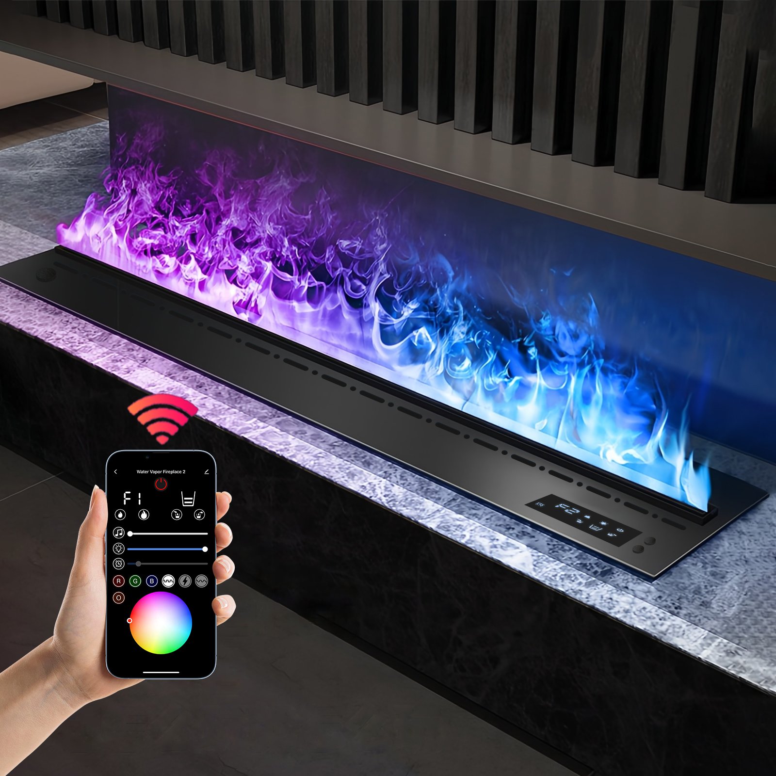 Love everything about this fireplace! The app control works smoothly, and the water vapor flames are stunning. Installation was straightforward, and the built-in design transformed our living room. The multi-color options are perfect for any mood.
